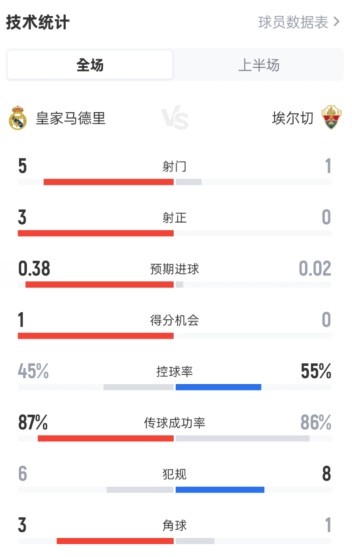 3月15日讯 西甲第28轮,皇马半场暂2-0埃尔切。