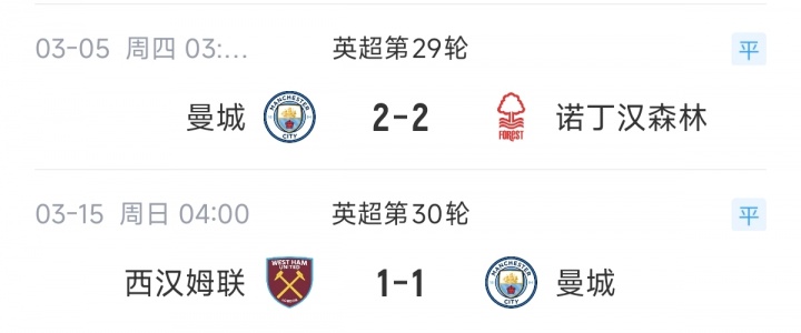 毒性太深!瓜迪奥拉拿了2月最佳,3月接连掉链子战平森林+西汉姆