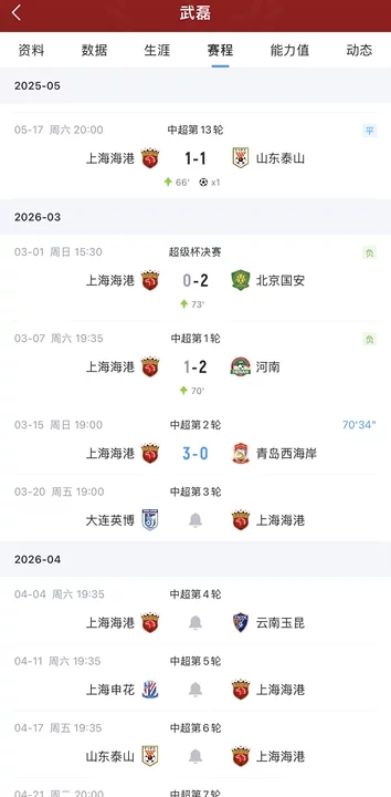 03月15日讯 中超第2轮,上海海港vs青岛西海岸,比赛第70分钟,替补登场的武磊两连击破门,收获复出后首球!这是他时隔302天再度取得进球!武磊上一次破门是2025年5月17日上海海港对阵山东泰山的比赛。