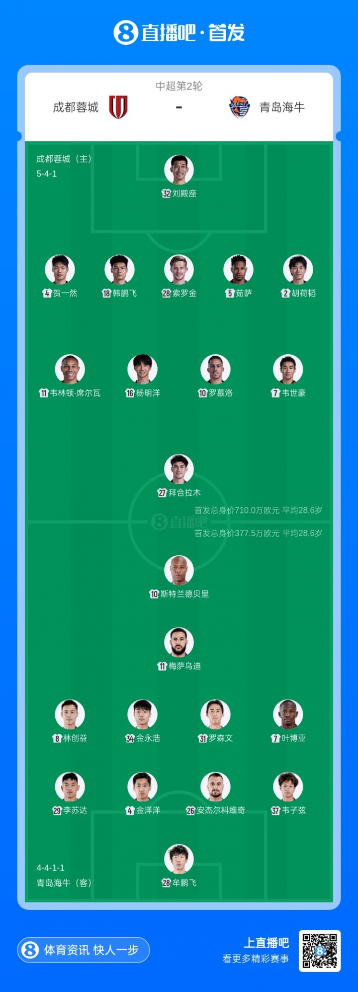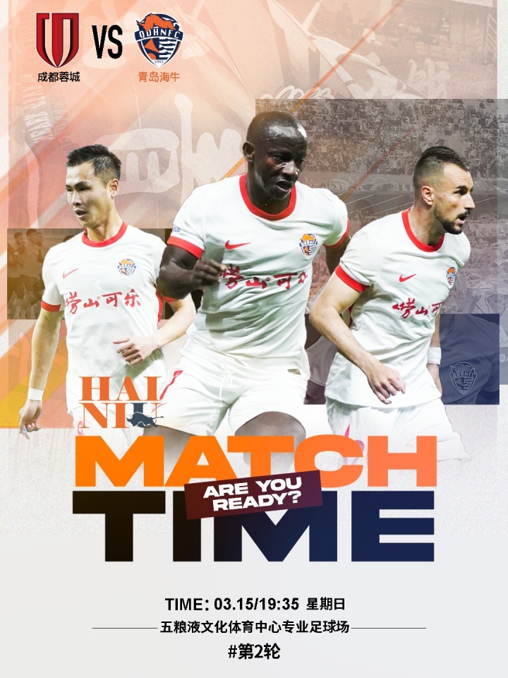 03月15日讯 北京时间今晚19点35分,中超第2轮,成都蓉城主场迎战青岛海牛,赛前双方公布首发阵容。【两队均派出4外援先发,蓉城方面拜合拉木迎来加盟后首次首发;海牛方面,此前被美职联处以禁赛的叶博亚未受影响,继续先发出战。】