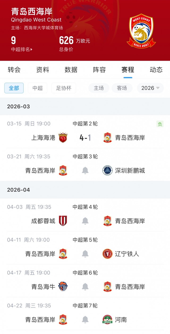 目前青岛西海岸两轮0分,在未扣分的球队中暂居垫底。若下轮不能在主场击败新鹏城,西海岸可能会被负分球队反超。