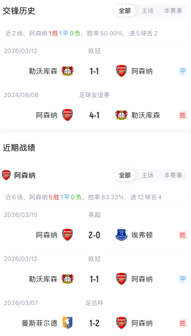 3月18日讯 欧冠16强次回合,阿森纳主场迎战勒沃库森比赛即将打响。赛前首发出炉。首回合对阵,勒沃库森1-1战平阿森纳。