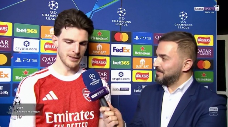 3月18日讯 今天凌晨欧冠1/8决赛次回合,阿森纳2-0击败勒沃库森,最终以总比分3-1晋级。阿森纳中场赖斯在赛后接受了记者采访。