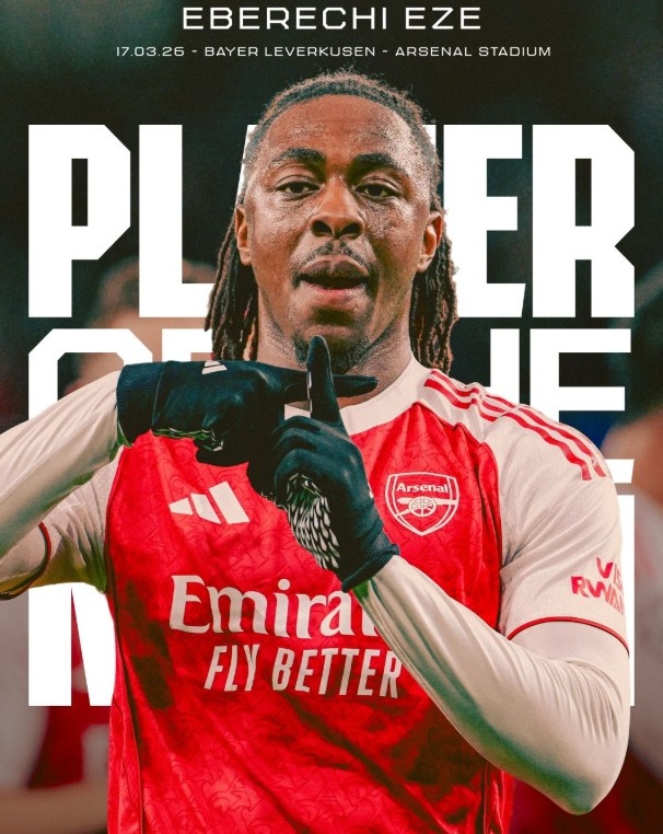 3月18日讯 官方消息,埃泽当选阿森纳球迷票选全场最佳球员。欧冠1/8决赛次回合,阿森纳2-0击败勒沃库森,两回合总比分3-1取胜晋级8强。次回合比赛,埃泽打入一记精彩的世界波破门,他也被球迷票选为阿森纳队内最佳球员。