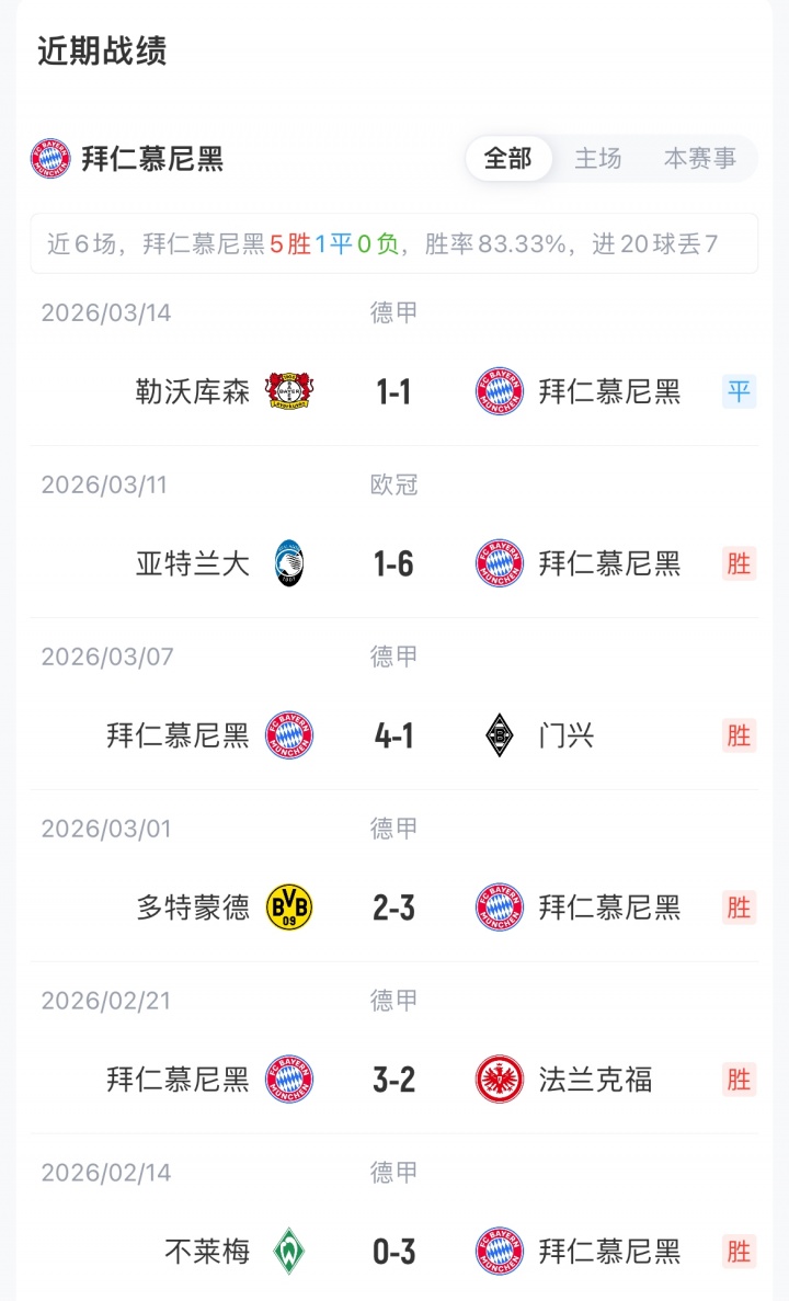 首回合6-1!拜仁vs亚特兰大首发:乌尔比希、凯恩、卡尔先发