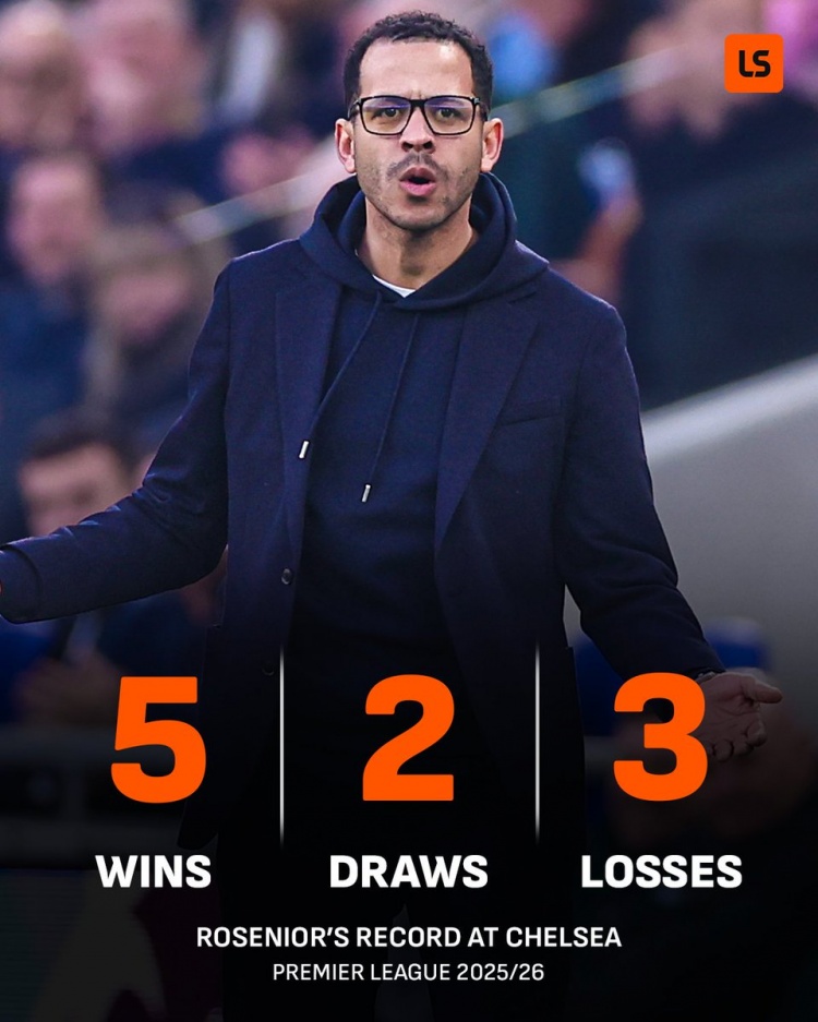 3月22日讯 英超第31轮比赛,切尔西在客场以0-3的比分惨败埃弗顿。罗塞尼尔上任以来共率队踢了10场英超比赛,战绩为5胜2平3负,胜率仅为50%。值得一提的是,在这个过程中,切尔西只面对过1次传统big6球队。