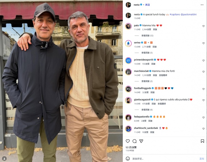 昔日的叹息之墙!内斯塔晒照与马尔蒂尼见面,还是那么帅