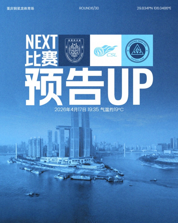 不屈之后,再上征途!4月17日19:35深圳新鹏城客场对阵重庆铜梁龙