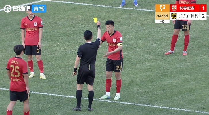 04月26日讯 中甲第6轮,长春亚泰vs广东广州豹。全场伤停补时阶段,尼康在角球区被撞出底线倒地,谭龙上前拖拽尼康引发双方球员冲突。主裁判向谭龙出示黄牌。