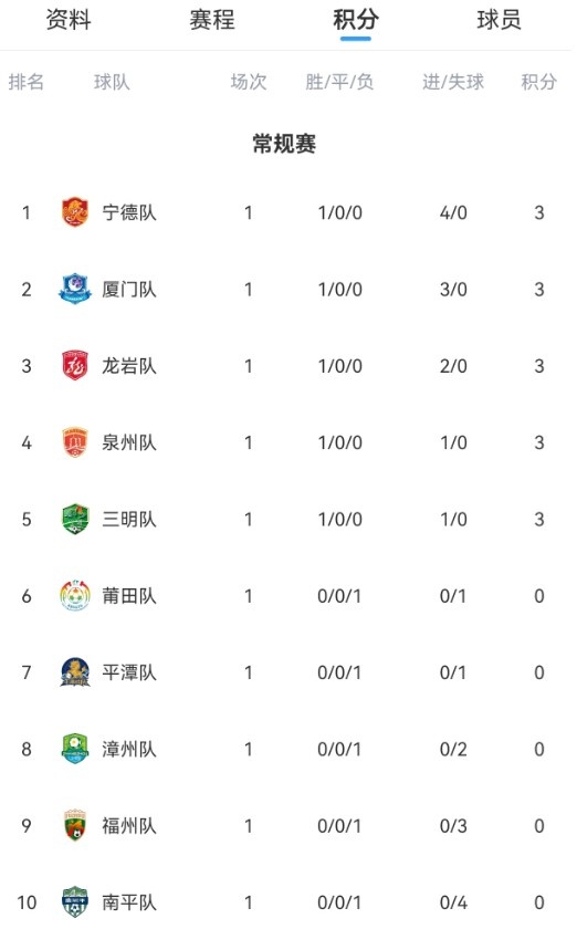 4月27日讯 2026年福建省城市足球联赛首轮战罢,宁德队、厦门队、龙岩队、泉州队、三明队均获胜,暂列积分榜前列。其中,宁德队球员林子琦梅开二度,领跑射手榜。积分榜积分榜上,宁德队以净胜球优势暂时排名第一,厦门队、龙岩队分列二、三位。射手榜射手榜上,林子琦梅开二度暂列第一。