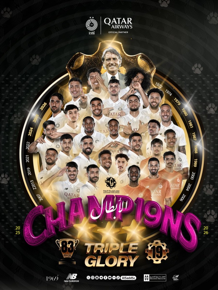 4月28日讯 卡塔尔星级联赛第22轮比赛,多哈萨德主场3-2击败北方体育。多哈萨德积45分排名联赛首位,夺得卡塔尔星级联赛冠军,这也是曼奇尼执教生涯至今赢得的第三个国家的顶级联赛冠军,此前他曾带队赢得意甲、英超冠军。多哈萨德达成卡塔尔星级联赛3连冠,队史第19次获得联赛冠军。
