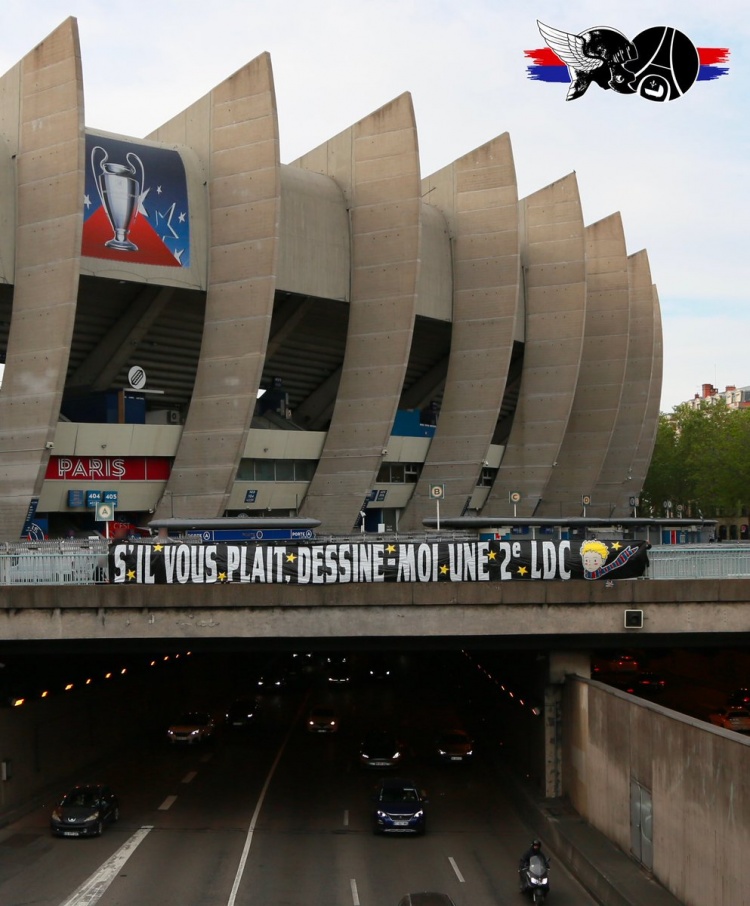 4月28日讯 北京时间明天凌晨,巴黎将在欧冠半决赛首回合比赛中主场对阵拜仁。巴黎圣日耳曼球迷组织Block Parisii在王子公园球场正下方悬挂了一条横幅,巧妙引用了《小王子》中的名句。横幅上面写着:“劳驾,请给我画第二座欧冠奖杯。”这句话改编自《小王子》中的台词,“请给我画一只羊。”巴黎球迷借此表达自己的梦想,希望球队能够再次赢得欧冠冠军。